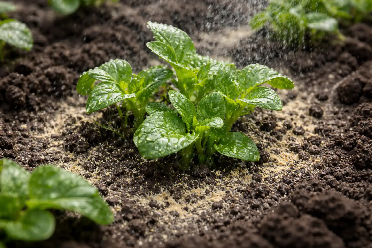Záhony hojne postriekajte hneď, ako sa objavia prvé „slučky“ zemiakov.