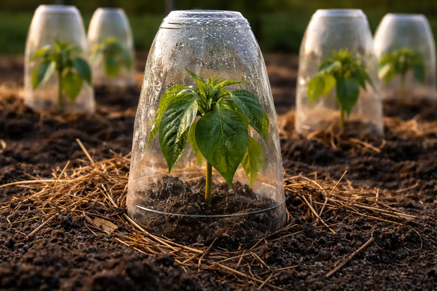 Tajný tip: Ak paprika začne vädnúť hneď po výsadbe, prikryte každú rastlinu na dva až tri dni obyčajnou papierovou kapucňou alebo rozrezanou plastovou fľašou bez viečka. Vytvorí sa tak mikroklíma s vysokou vlhkosťou a zníži sa odparovanie cez listy, kým sa korene prispôsobia.