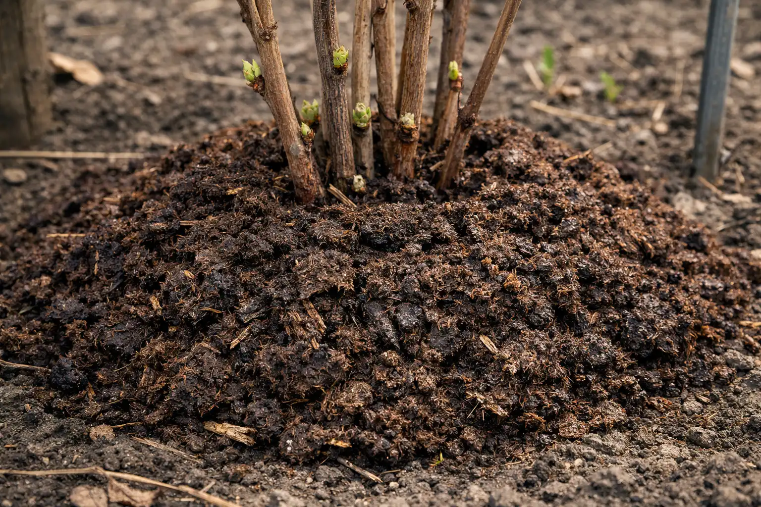 Čerstvý hnoj je prijateľný len ako mulčovanie na hrubej vrstve slamy, aby sa zabránilo spáleniu povrchových koreňov.