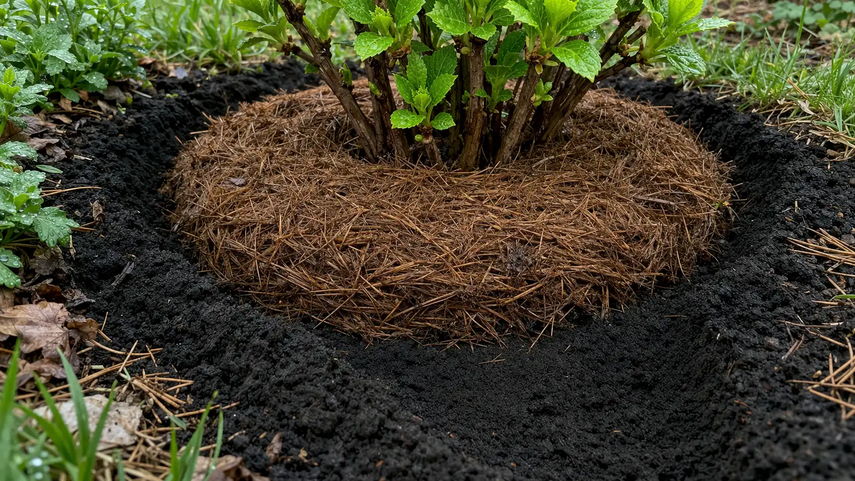 Dbajte na to, aby sa mulč nedotýkal priamo kmeňa kríka, nechajte niekoľkocentimetrovú medzeru na cirkuláciu vzduchu.
