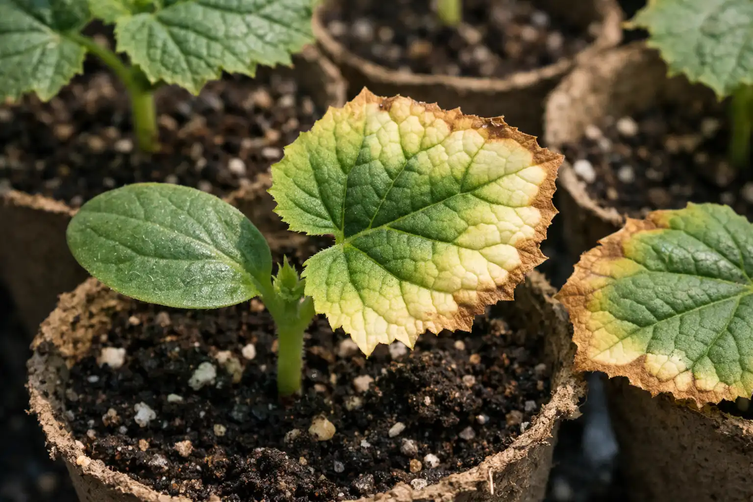 Nadmerná aplikácia draselného hnojiva do obmedzeného objemu sadenice mení kyslosť pôdy. V dôsledku toho nie sú korene fyzicky schopné absorbovať horčík a vápnik. Uhorky začínajú „plešivieť“, opadávajú im spodné listy a vrcholky sú plytké a pokrútené.