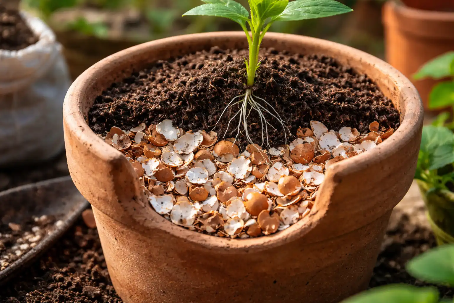 Môžu sa škrupiny miešať s kúpenou zeminou? Áno, pridanie hrubých častíc do samotného substrátu zlepšuje prevzdušňovanie a zabraňuje zlepeniu pôdy.