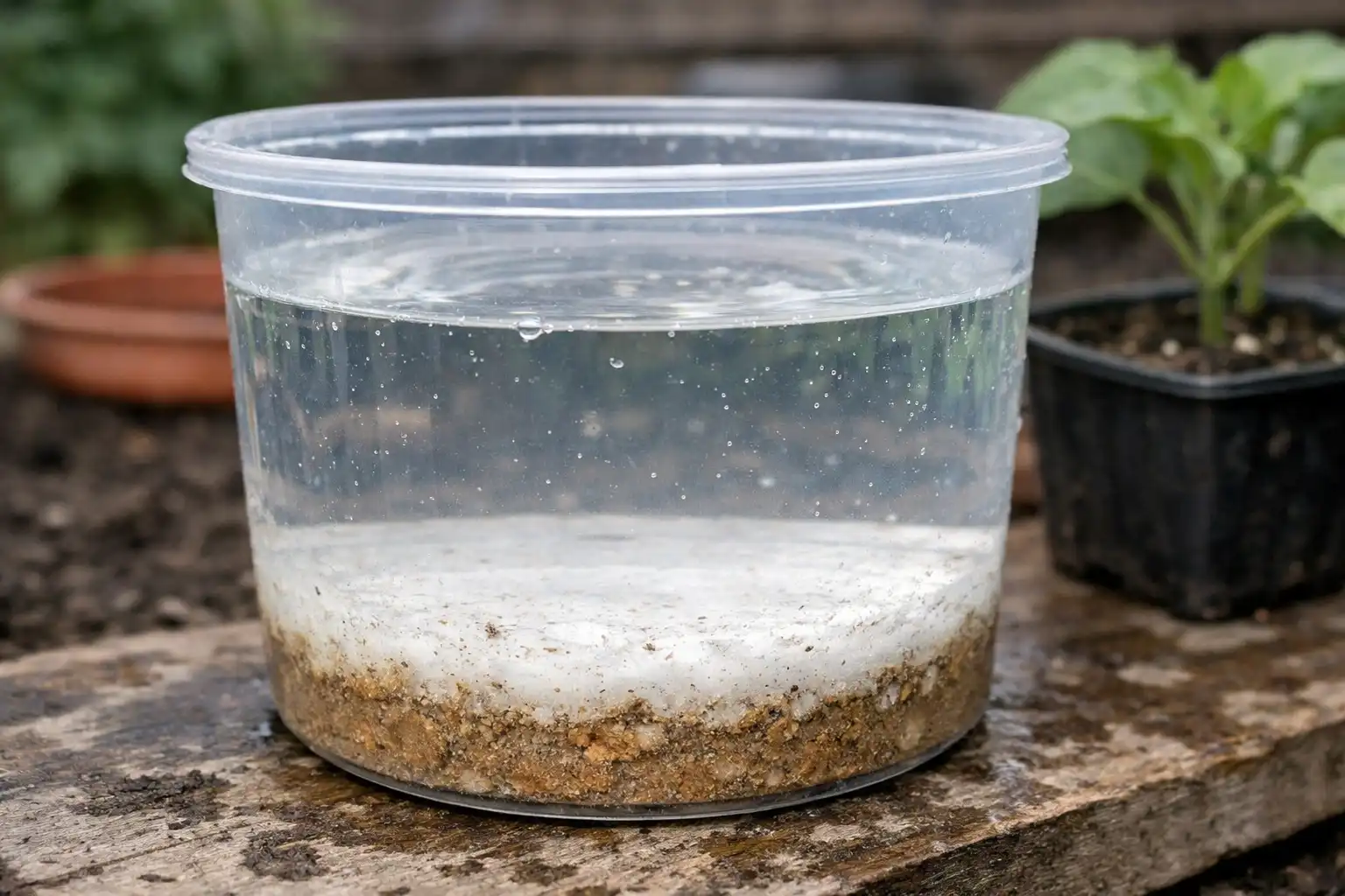 Na stenách pohárov a na povrchu pôdy sa objavia biele alebo červenkasté usadeniny soli.