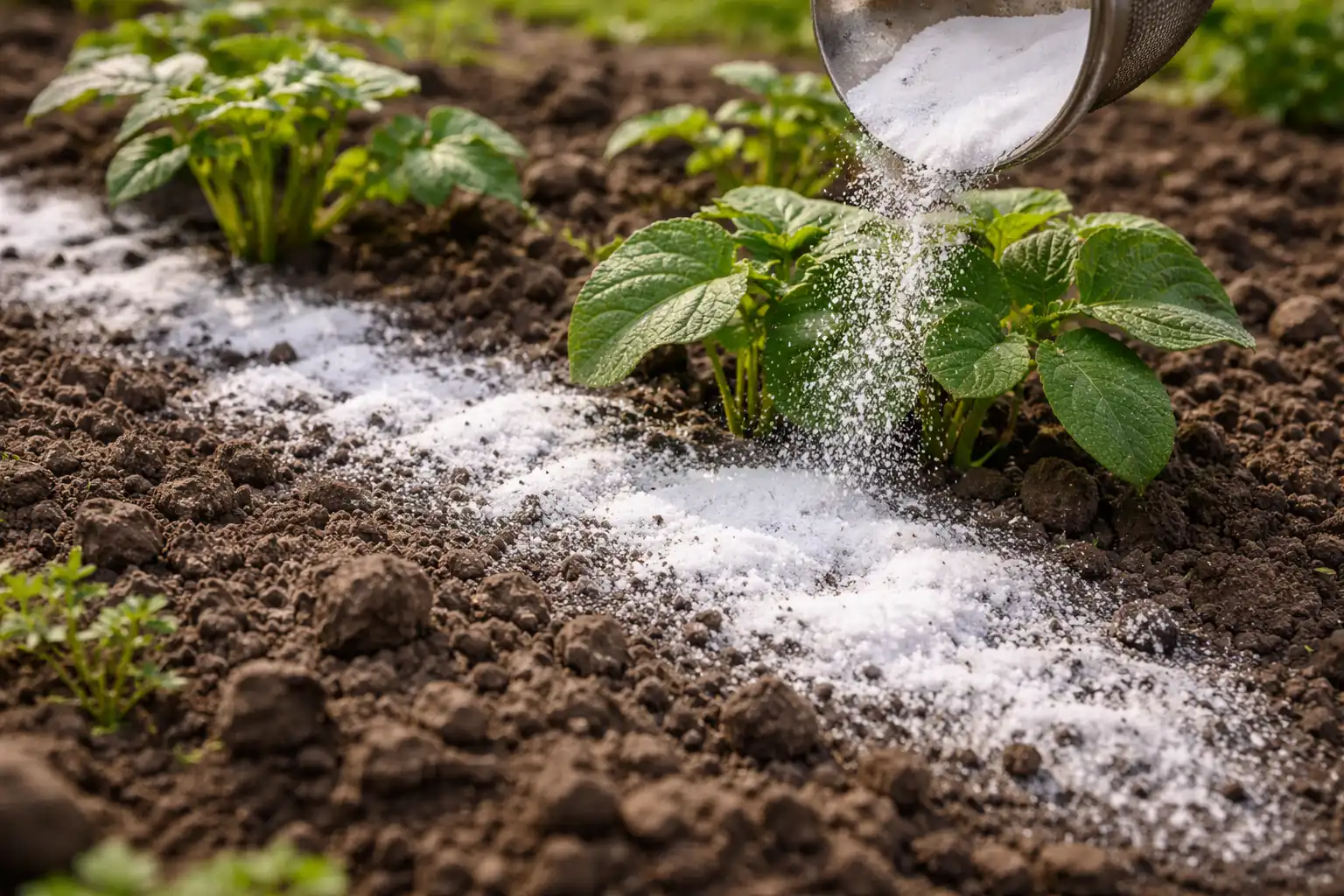 Tajná nuansa: nesypte sódu bikarbónu „od oka“ priamo na hľuzy. Aby ste predišli spáleniu mladých výhonkov, vždy zmiešajte jedlú sódu so suchým pieskom alebo drevným popolom v pomere jedna ku jednej. Tým sa zabezpečí dlhodobý účinok a rovnomerné rozloženie.