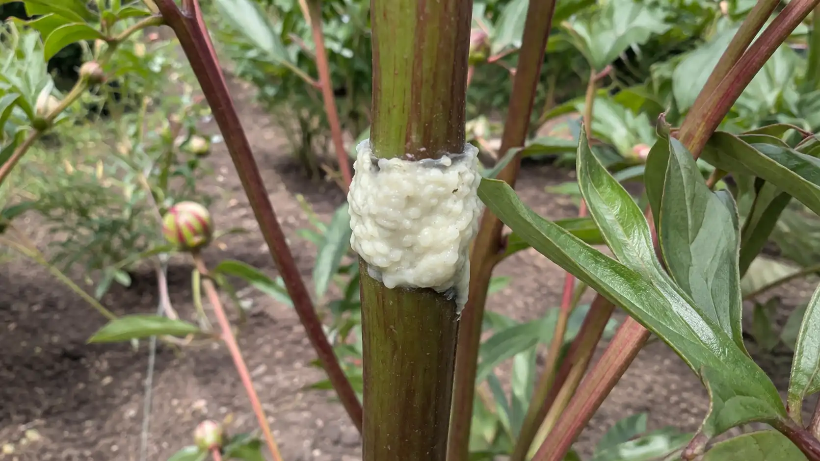 Na stonku pivonky vo výške 5-10 cm nad zemou naneste „krúžok“ tejto zmesi.