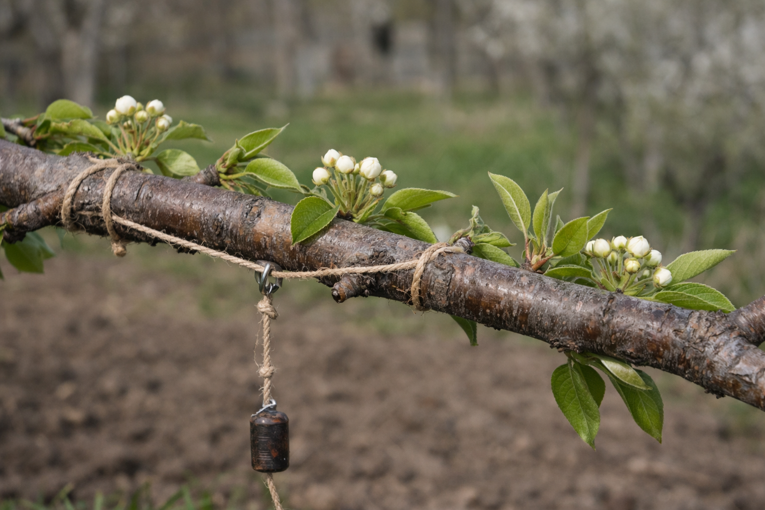 Najúčinnejší spôsob ohýbania konárov, ktorý používam, je nútiť konáre do vodorovnej polohy. Vo vodorovnej polohe konárov sa pohyb miazgy spomalí, čo signalizuje stromu, že je čas prejsť na reprodukciu.