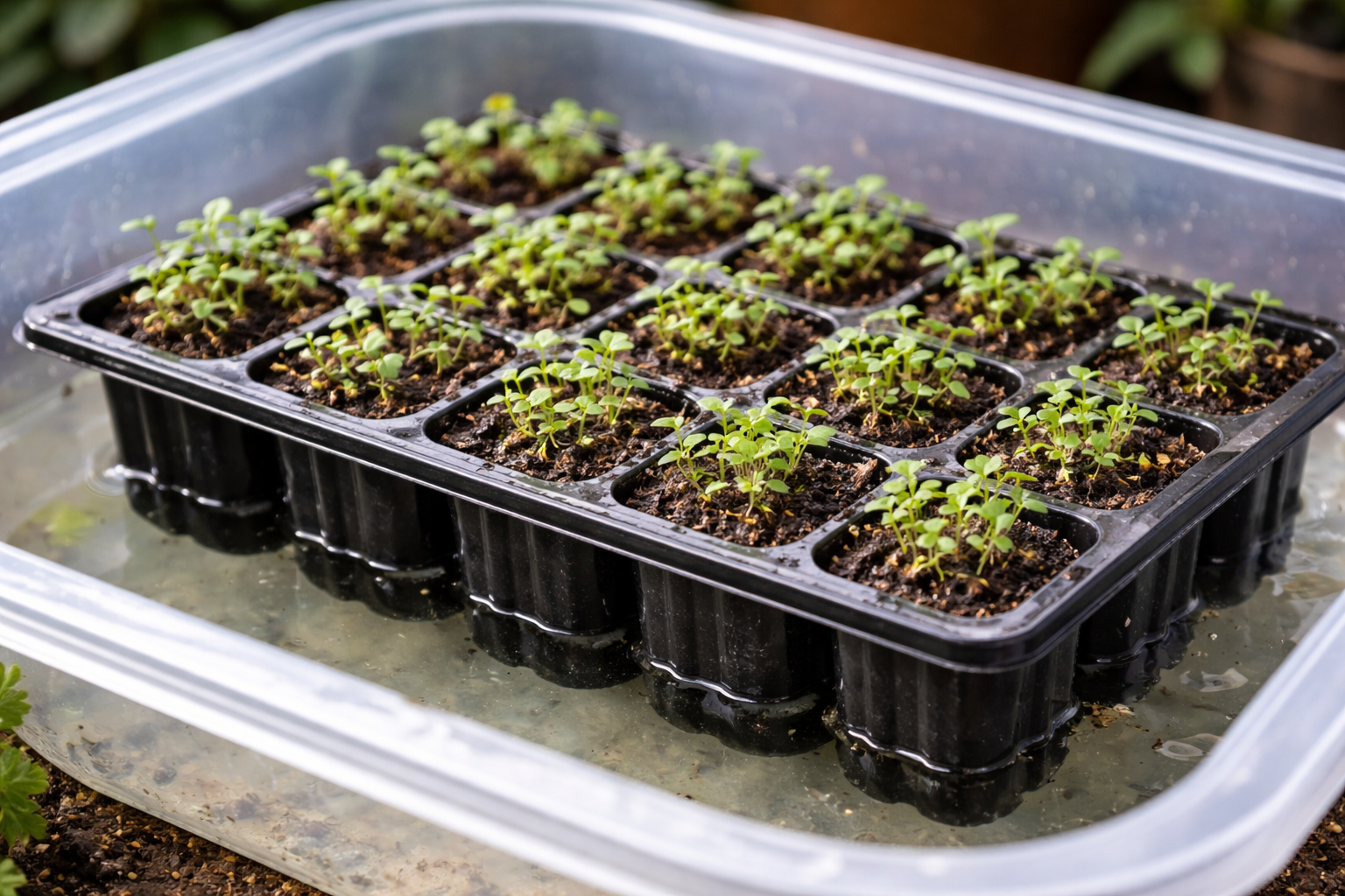 Hlavnou príčinou úhynu sadeníc – prudký úbytok vlhkosti v kazety. Malé bunky vysychajú nerovnomerne a jemné korene lobeliek nemajú žiadnu bezpečnostnú rezervu.