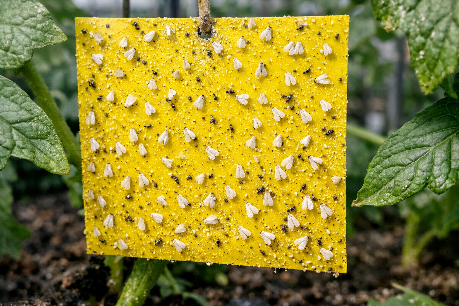 Tajný tip: Biele mušky milujú žltú farbu. Na úroveň vrcholkov rastlín zaveste doma vyrobené jasne žlté kartóny natreté vrstvou entomologického lepidla alebo obyčajnej vazelíny. Pomôže to nielen zničiť časť populácie, ale aj včas odhaliť začiatok útoku.