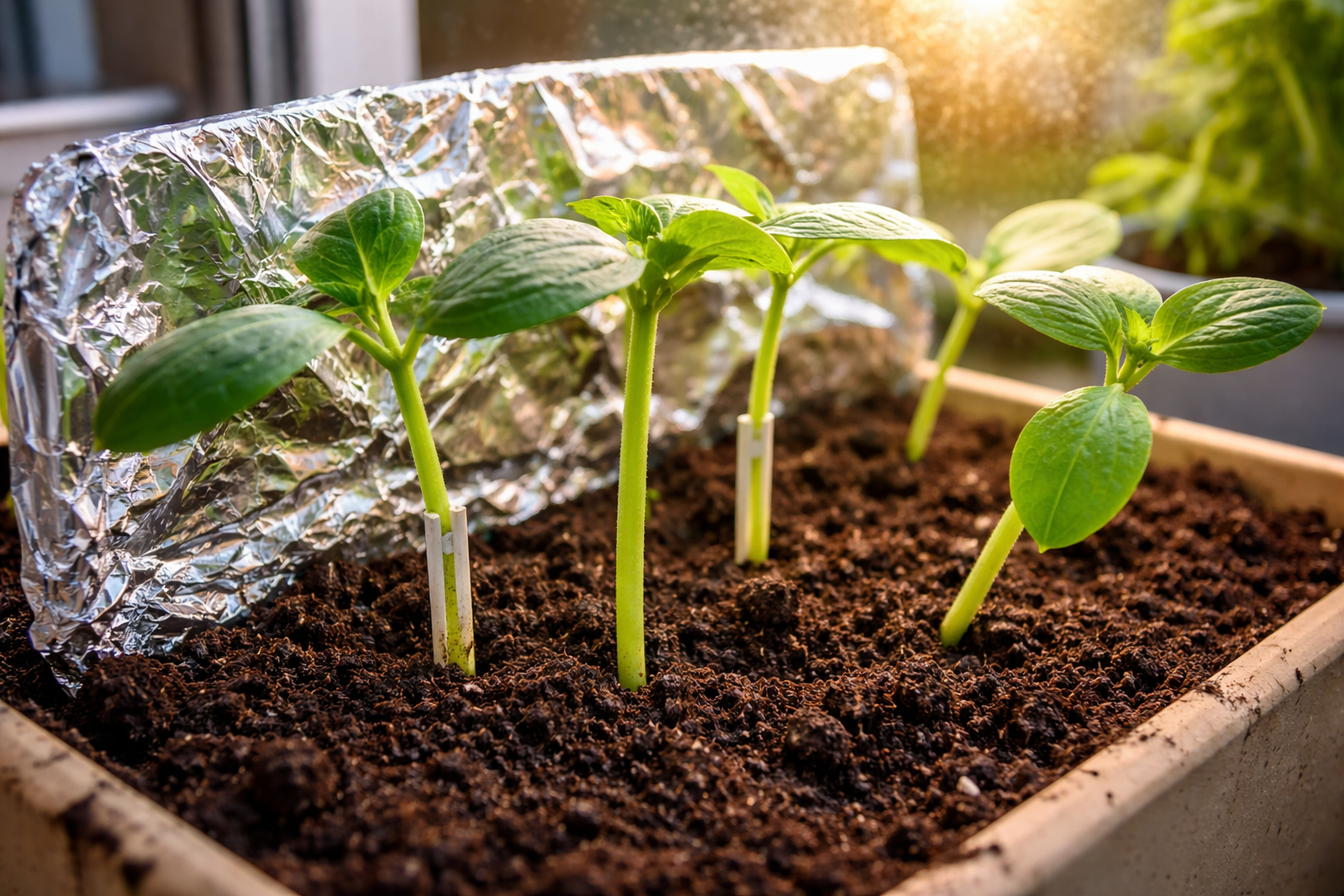 Za sadenicu umiestnite fóliovú zástenu alebo zrkadlo, ktoré odráža zvyšky denného svetla.