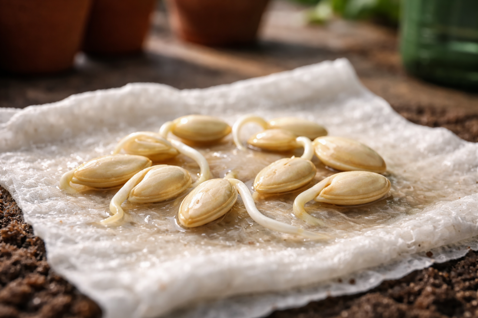 Klíčia vo vlhkej utierke, kým sa neobjaví niekoľko milimetrov veľký „zobáčik“.