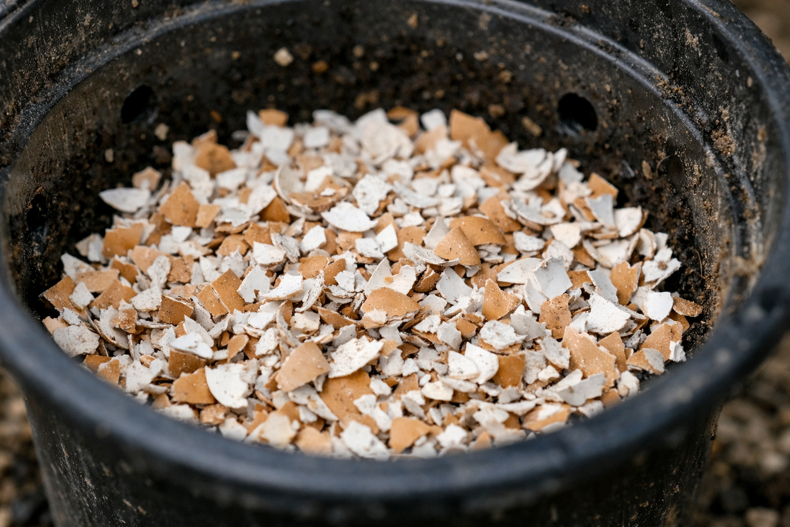 Používanie organických zvyškov na jar je obzvlášť dôležité pre plodiny, ktoré sú citlivé na úroveň vápnika. Pri položení na dno nádoby škrupina pomaly uvoľňuje prospešné látky, čím sa eliminuje riziko predávkovania.