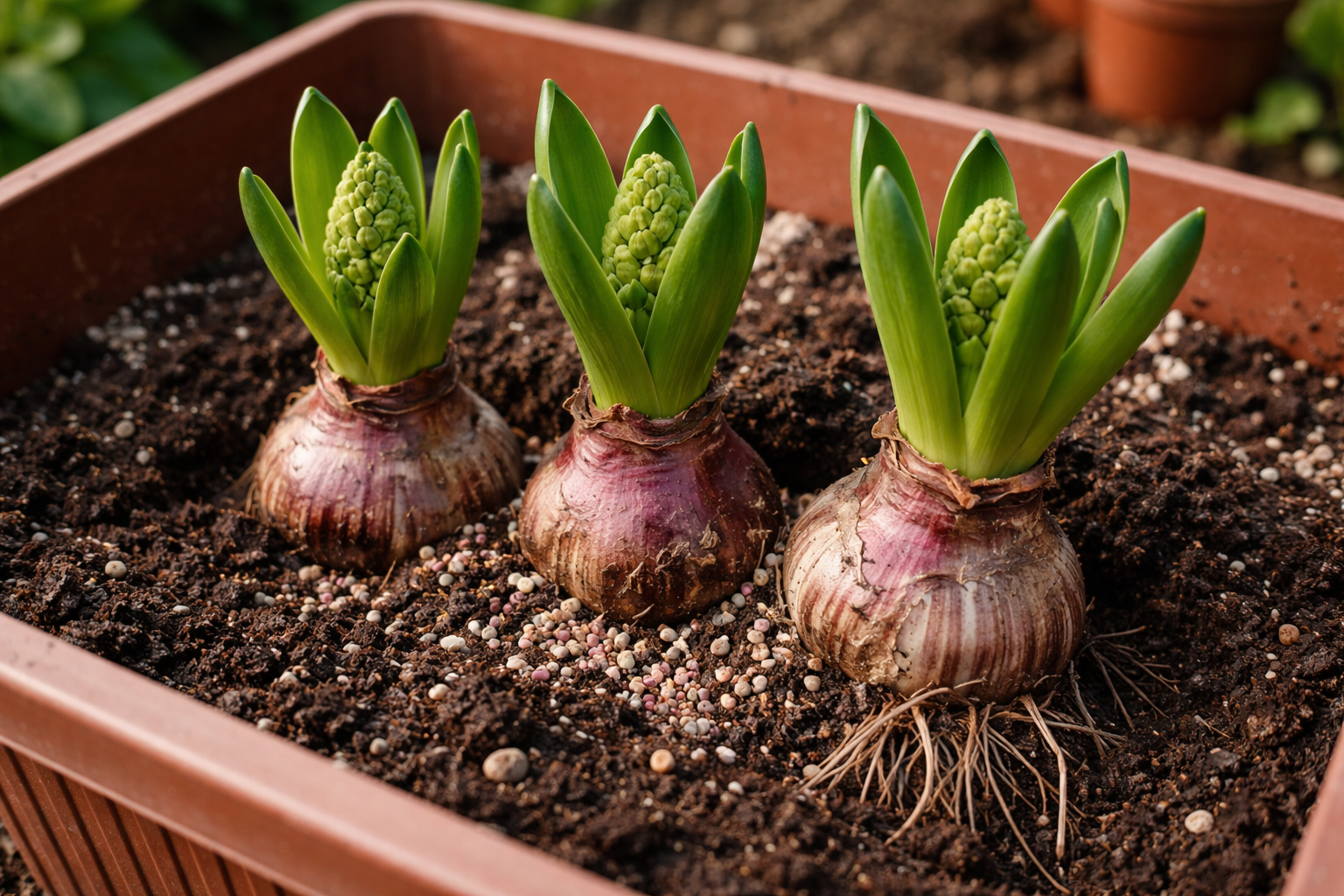Tajná nuansa: aby hyacinty nasadili šípku, po zblednutí kvetov (ale pred zožltnutím listov) treba pridať síran draselný. To dáva rastline signál, že je čas vytvoriť púčik na budúci rok.