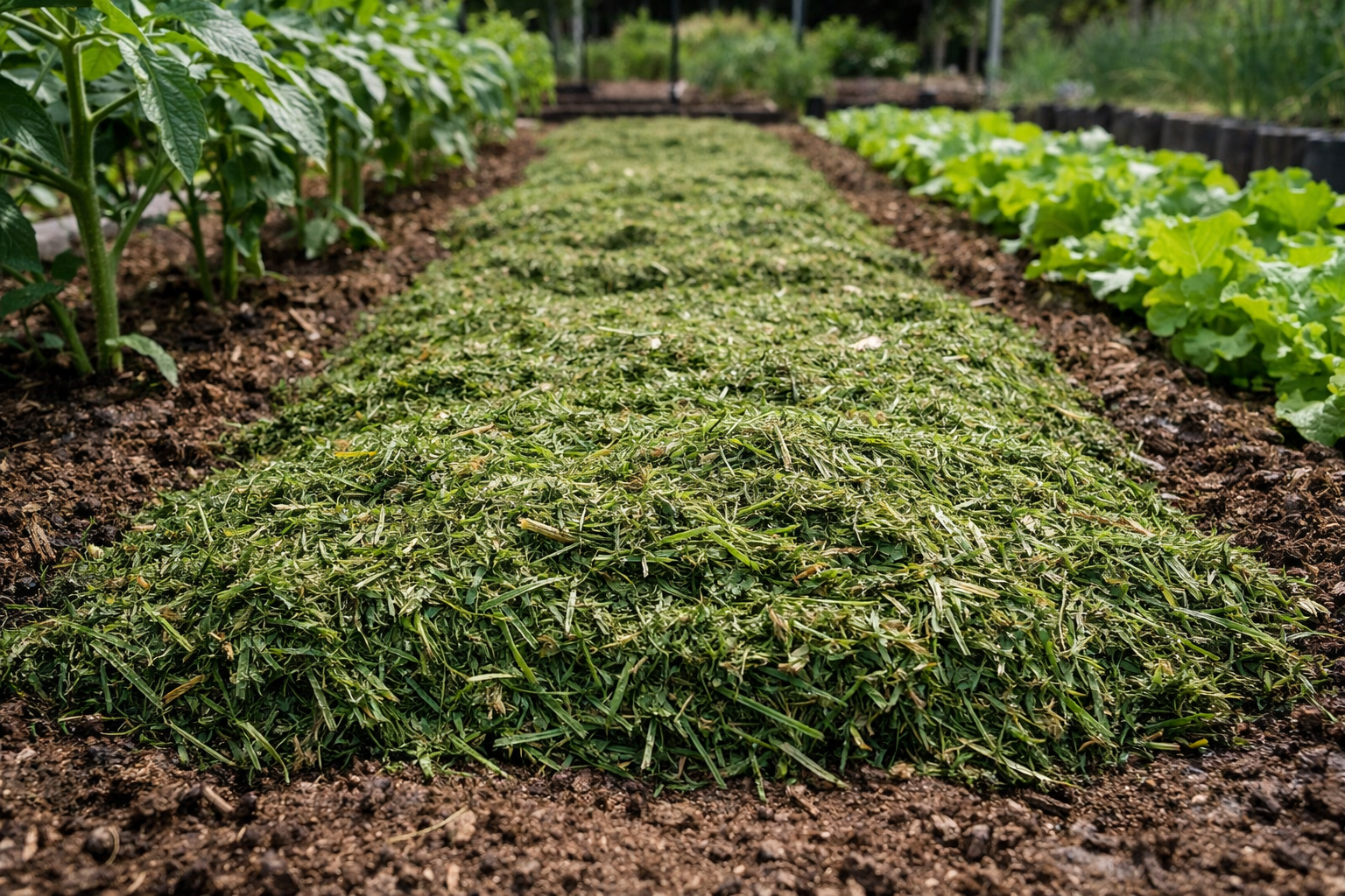 Keď som začal experimentovať s krycími materiálmi, skúšal som všetko od čiernej fólie až po piliny. Ukázalo sa, že obyčajný trávniková tráva vyhráva vo väčšine ohľadov, najmä ak sa zohľadní rýchlosť rozkladu a návratnosť živín.