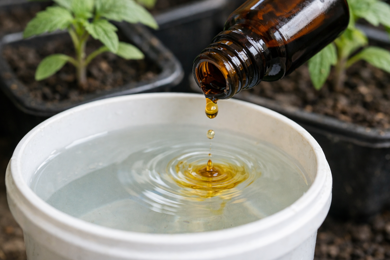 V slabej koncentrácii (1 kvapka na 3 litre) je roztok pre pôdnu mikroflóru bezpečný.