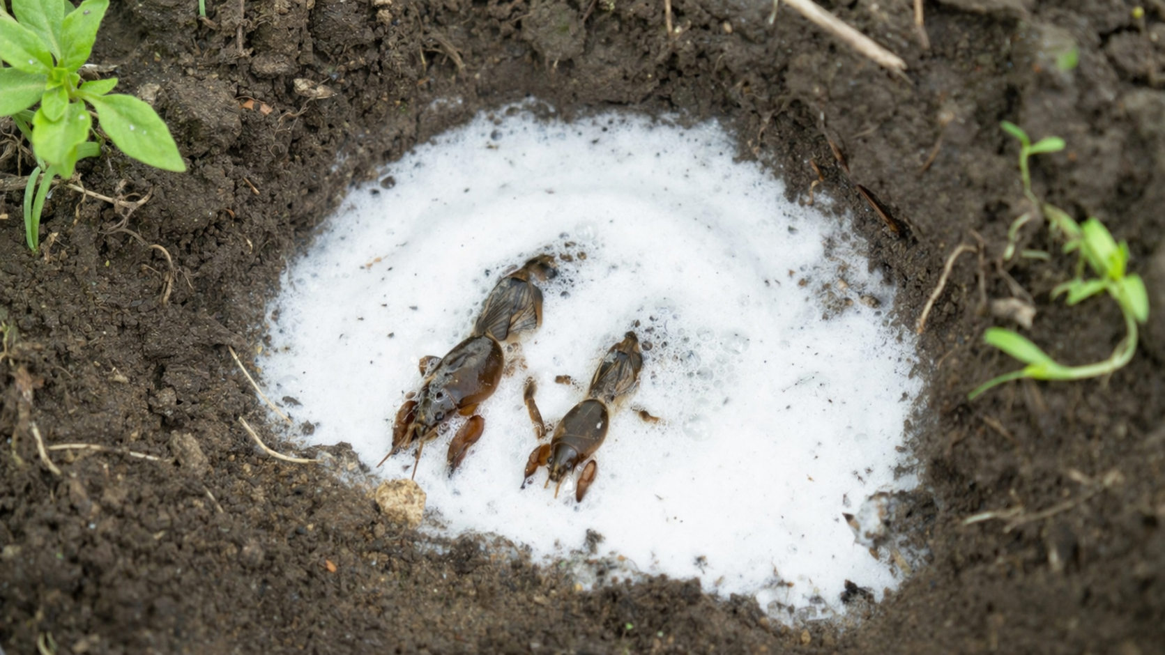 Tajná nuansa: Na zvýšenie účinku pridávam pred zaliatím roztoku sódy bikarbóny do každej nory kvapku nerafinovaného rastlinného oleja. Ten upchá výduchy hmyzu a prinúti ho oveľa rýchlejšie vyskočiť na povrch.