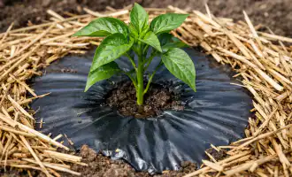 Po 18:00 hodine prikryte záhon čiernou netkanou textíliou.