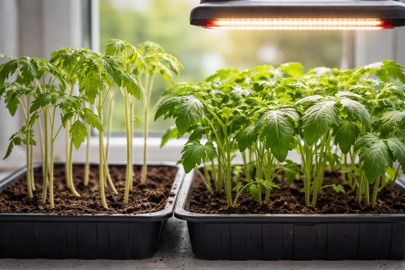 Každú sezónu sa záhradníci stretávajú s rovnakým nešťastím – sadenice paradajok na zatienenom parapete sú tenké, zakrpatené a bledé. Nedostatok svetla spôsobuje, že klíčky sa z posledných síl vyťahujú nahor a stenčujú stonku. Ukážem vám osvedčený algoritmus činností, ktoré rýchlo zastavia vyťahovanie a vaše sadenice budú silné a zavalité bez zbytočných ťažkostí.