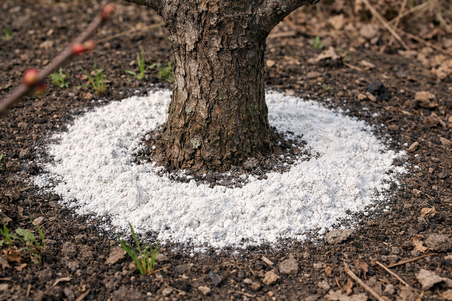 Najlepší čas na postup je obdobie topenia snehu alebo prvé dni po jeho zjazde. Pôda by mala byť vlhká. Prášok by sa mal rovnomerne rozotrieť po celom obvode koruny, mierne od kmeňa.