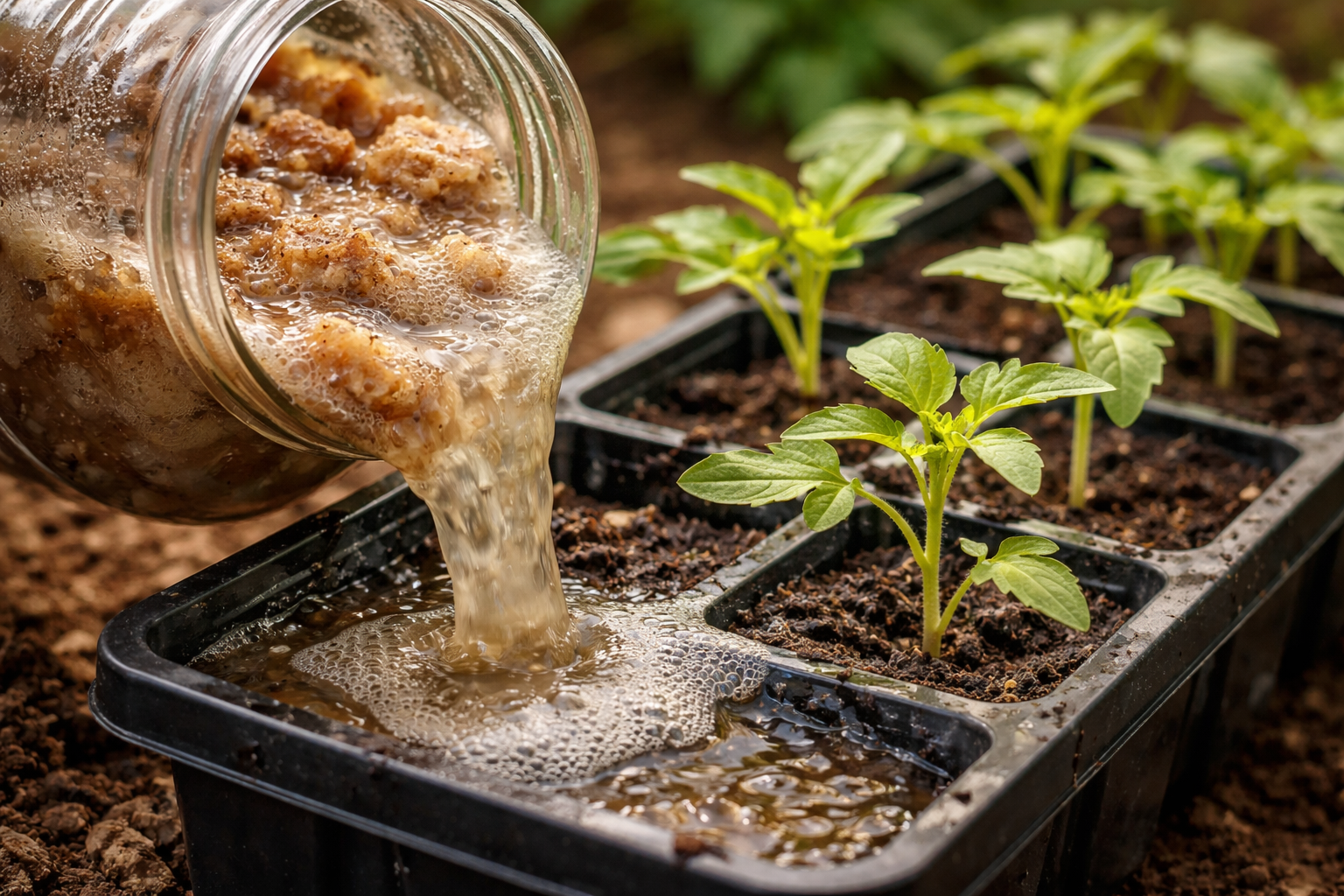 Organickú kvapalinu aplikujte len vtedy, keď je pôda vlhká, ideálne skoro ráno v deň po bežnom zalievaní.