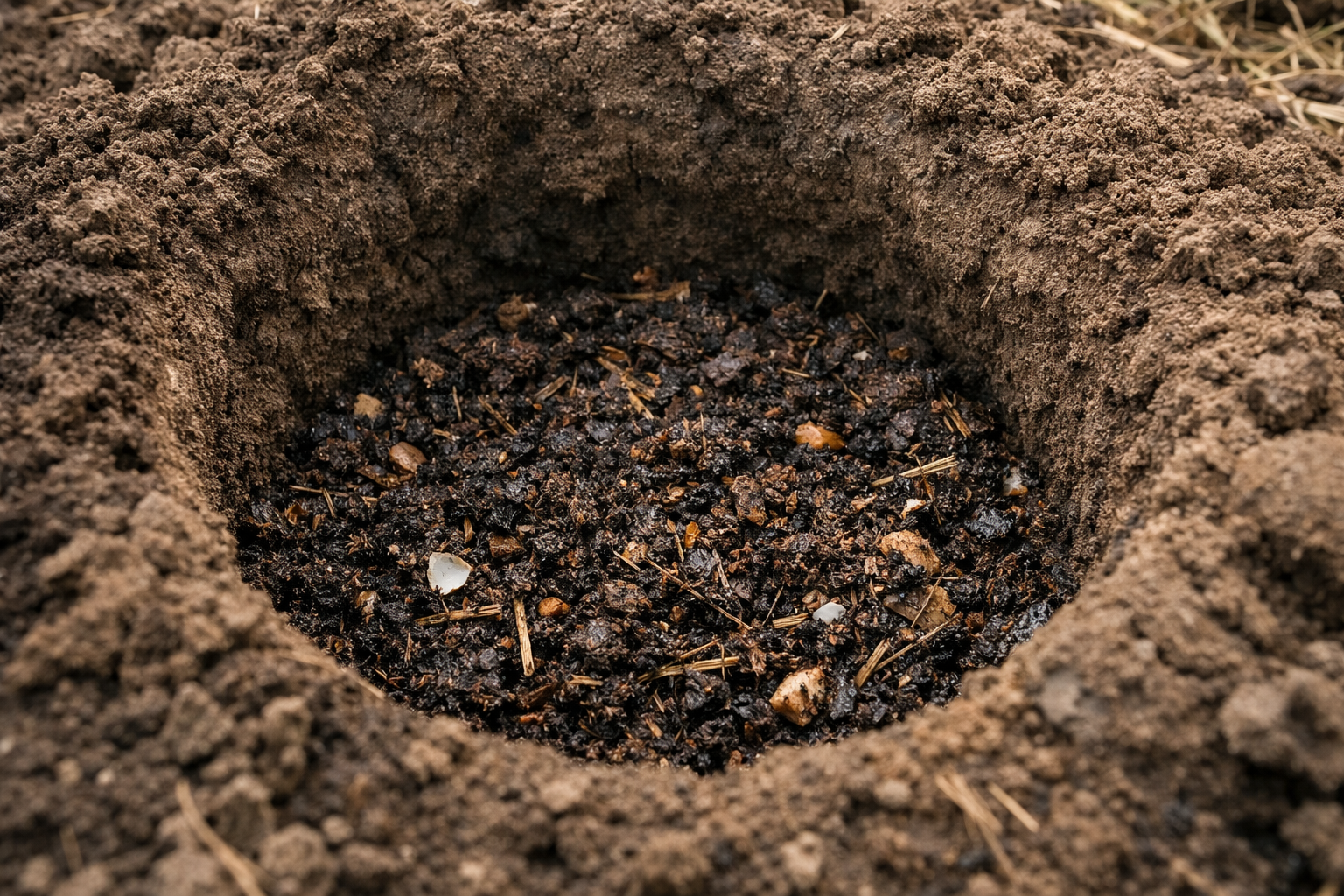 Na dno jamy dajte hrubú vrstvu prezretého kompostu